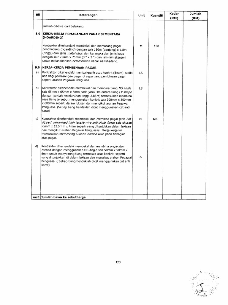 Fleksibilitas volume dan total biaya inilah yang membedakan antara jenis kontrak lumpsum dan harga satuan. Contoh surat sebut harga kontraktor. Dari mulanya sekitar 70 ribu hingga 80 ribu anggota, kini hanya sekitar 35 ribu anggota. Apakah anda mencari contoh perjanjian subkontrak pekerjaan pembangunan bilingual yang lengkap?. Seperti pelbagai saiz paku (1 inci , 1.5 inci) arahan kepada penyebut harga: