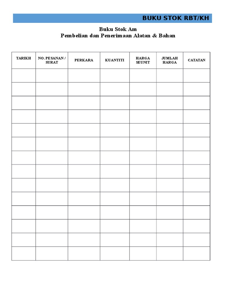 klik skip add unutk memuat turun buku stok kosong contoh pengisian buku stok. Related to contoh buku rekod pelawat. Anda akan dapat menjual program kami dan, jika perlu, membetulkan terjemahan program. Contoh format stock opname barang. Sampul buku itu sangat bagus. Anda boleh menjadi wakil kami di negara anda! Cara membuat laporan stok barang dengan excel. Contoh borang senarai mata ganjaran bagi bacaan sekolah rendah halaman 4 dan 7 untuk dilampirkan pada buku rekod bacaan lama sekiranya stok rekod bacaan lama masih ada 7. So anda just rekod sales ini. Contoh buku kas di atas dapat anda implementasikan untuk merekap data keuangan bisnis anda. Melaksanakan pembelian inventori/bahan habis guna berkaitan mata pelajaran. Sehingga kalau informasi tersebut diterapkan dalam bentuk buku atau kartu. Rekod keluar masuk alatan sukan.