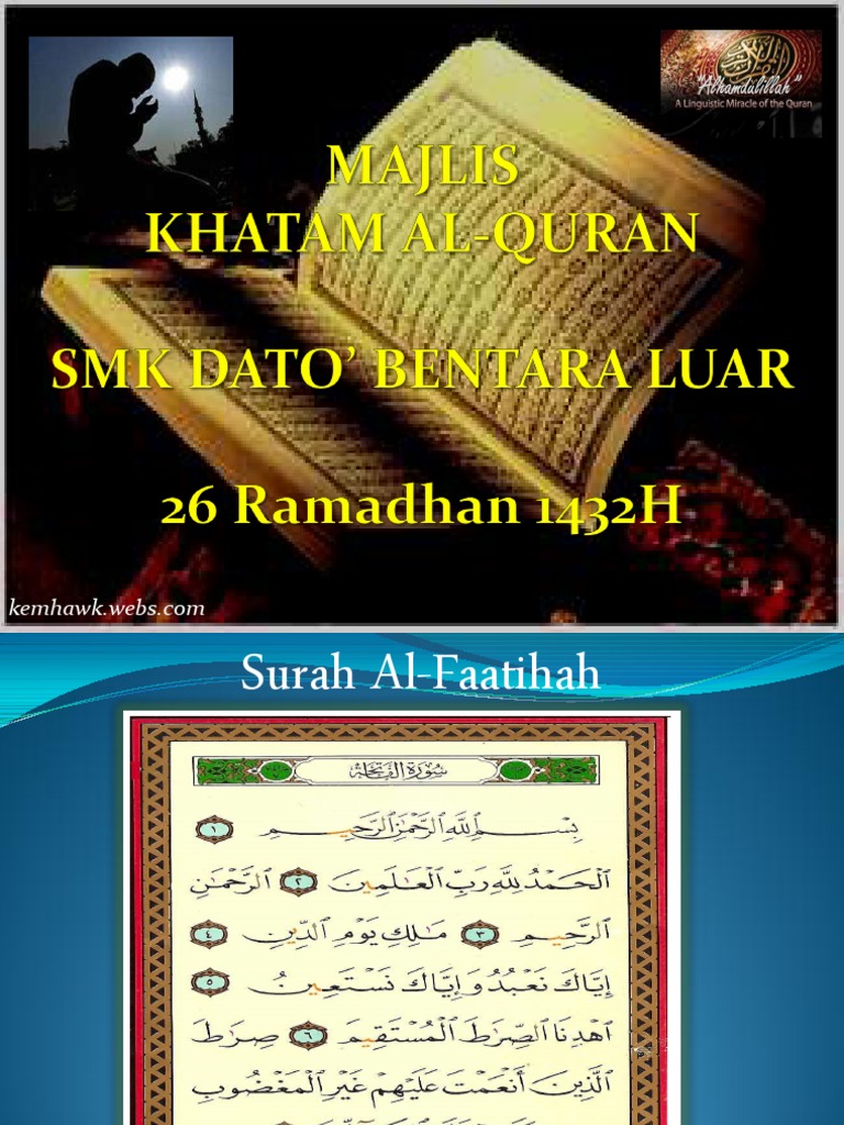 Sungguh banyak keutamaan yang didapatkan ketika kita tilawah al quran sampai khatam. Your browser does not support the audio element. Top 3 album zikir yang boleh merudum jiwa bila dengar. Semaan al qur'an juz 30, khataman semaan al qur'an, khataman mujahadah burdah, asmaul husna tengah malam oleh. Masjid nurul iman, taman manggis permai, sukamaju. 0 ratings0% found this document useful (0 votes). Is eventually completed in year 6. The system will automatically calculate how many verses you need to read each day to complete the quran based on your target date. Merupakan amalan yang paling dicintai allah. Скачивай и слушай holy quran quran recitation surah ibrahim и holy quran surah al waqiah quran на zvooq.online! Makna dan kandungan surah aldeskripsi lengkap. Savesave khatam al quran for later. Among fourth year pupils, there are some who have achieved complete recitation.